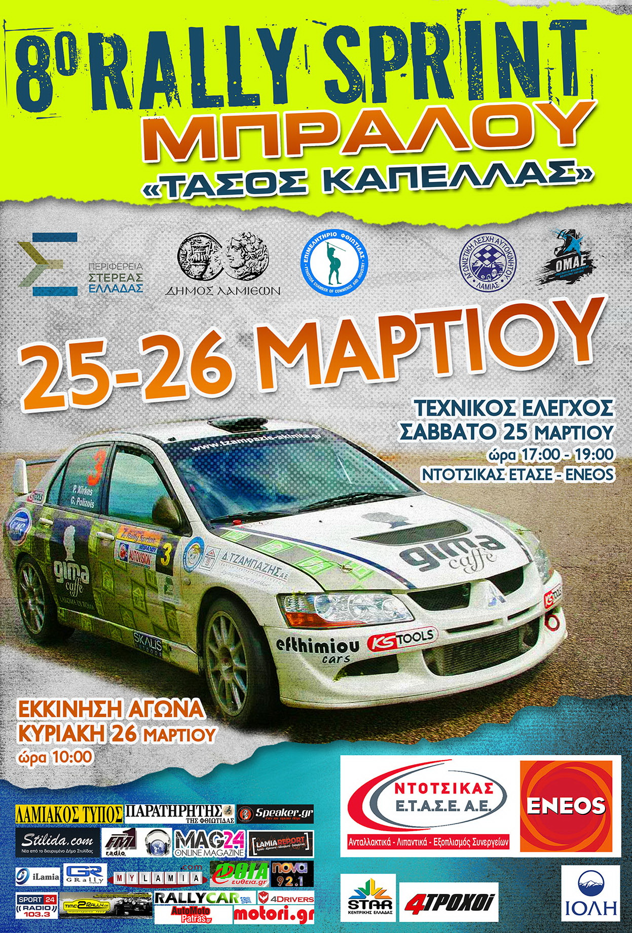 “Με ιδιαίτερη ικανοποίηση χαιρετίζω τη διοργάνωση του 8ου Ράλλυ Σπριντ Μπράλου “Τάσος Καπέλλας”, που αποτελεί τον 2ο γύρο του Κυπέλλου Ασφάλτινων Ράλλυ Νοτίου Ελλάδος και του Πρωταθλήματος Ράλλυ Ιστορικών Αυτοκινήτων και θα διεξαχθεί σε μια αγαπημένη, για αγωνιζόμενους συμμετέχοντες και θεατές, Ειδική Διαδρομή. Είμαι σίγουρος ότι η γνώση, το μεράκι αλλά και η μεγάλη εμπειρία των ανθρώπων της Αγωνιστικής Λέσχης Αυτοκινήτου Λαμίας σε διοργανώσεις αγώνων υψηλών προδιαγραφών σε επίπεδο οργάνωσης, θεάματος και ασφάλειας, θα αποτελέσουν την καλύτερη εγγύηση για το πλούσιο και ασφαλές θέαμα που θα απολαύσουν οι θεατές. Εύχομαι στους διοργανωτές και στους συμμετέχοντες στο 8ο Ράλλυ Σπριντ Μπράλου “Τάσος Καπέλλας” καλή επιτυχία, αλλά και στους πολλούς φίλους του μηχανοκίνητου αθλητισμού που θα βρεθούν τις επόμενες ημέρες στο Δήμο Λαμιέων, που είναι για ακόμη μια φορά ο Μεγάλος Οικοδεσπότης ενός αγώνα, να απολαύσουν μια μοναδική εμπειρία.“