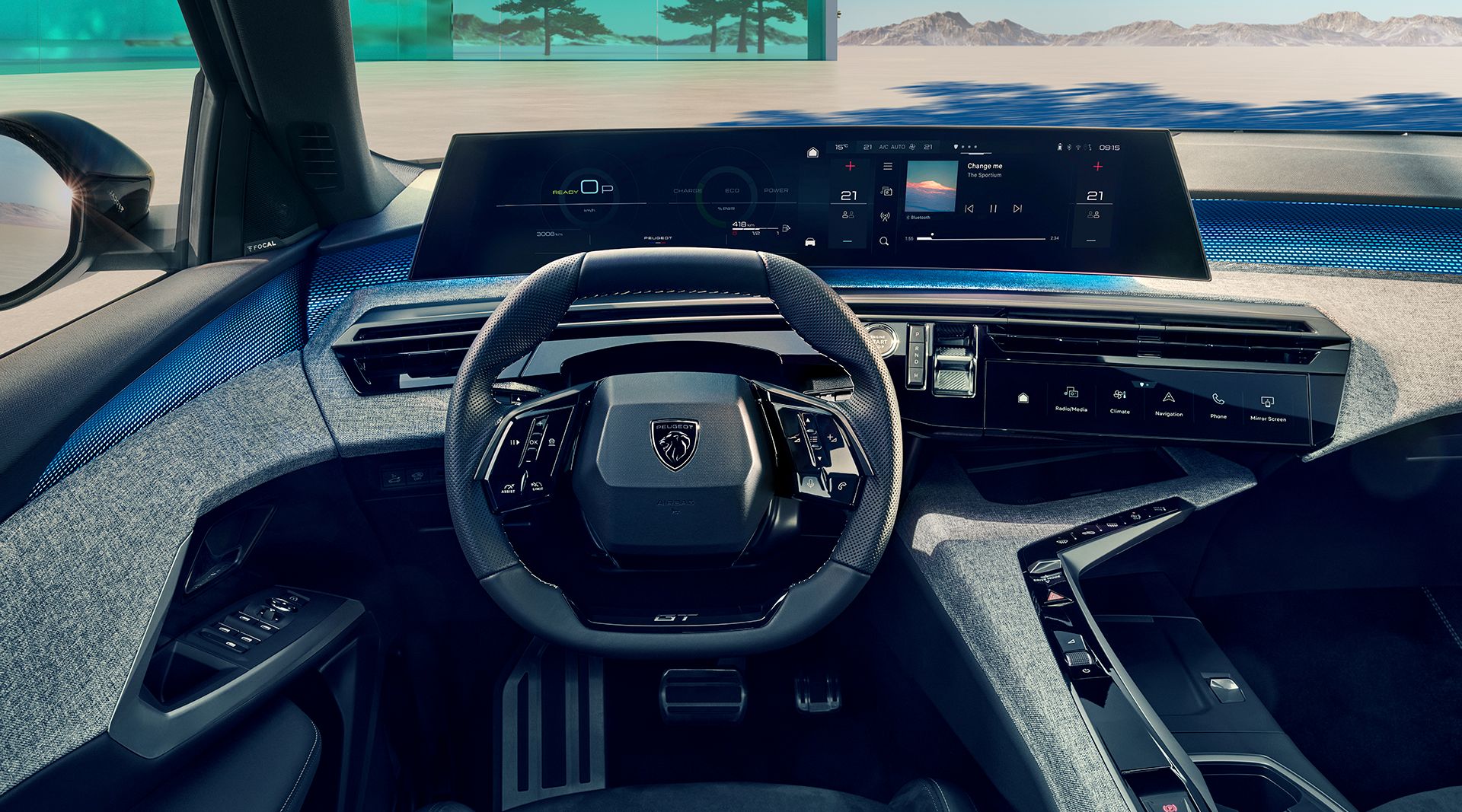Στο εσωτερικό, το Panoramic i-Cockpit® αποτελεί την καρδιά της εμπειρίας. Η αιωρούμενη κυρτή οθόνη 21 ιντσών, που συνδυάζει τον ψηφιακό πίνακα οργάνων με το σύστημα πολυμέσων, προσφέρει μια υπερσύγχρονη και εργονομική διάταξη. Ο φωτισμός LED και οι επενδύσεις από premium υλικά, όπως αλουμίνιο, Alcantara ή συνδυασμό δέρματος, δημιουργούν μια ατμόσφαιρα ανώτερης ποιότητας.