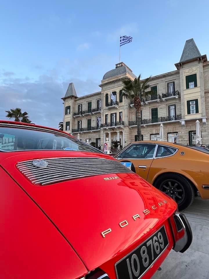 Εκεί όλο το νησί θα υποδεχθεί τους συμμετέχοντες στην εμβληματική πλατεία μπροστά από το Poseidonion Grand Hotel, στον περιβάλλοντα εξωτερικό χώρο του οποίου θα παραταχθούν τα αυτοκίνητα της εκδήλωσης, ενώ το απόγευμα της ίδιας μέρας θα παρατεθεί welcome drink στα αμφιθεατρικά μπαλκόνια του ξενοδοχείου.