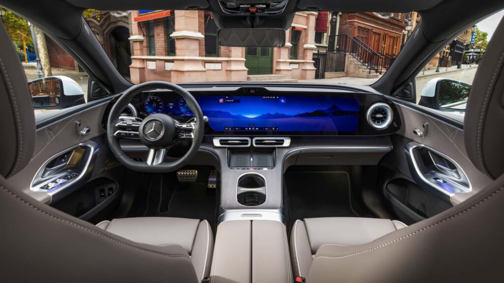 Το εσωτερικό της ηλεκτρικής C-Class είναι μια σπουδή στην ψηφιακή πολυτέλεια. Δανείζεται στοιχεία από τη ναυαρχίδα EQS, ενσωματώνοντας την τελευταία γενιά του συστήματος MBUX. Η κεντρική οθόνη, με την κρυστάλλινη ευκρίνεια και την τεχνητή νοημοσύνη που “μαθαίνει” τις συνήθειες του οδηγού, πλαισιώνεται από υλικά κορυφαίας ποιότητας, όπως ανακυκλωμένα υφάσματα υψηλής αισθητικής και βιώσιμο δέρμα. Η έλλειψη κεντρικού τούνελ μετάδοσης απελευθερώνει σημαντικό χώρο για τα πόδια των πίσω επιβατών, δίνοντας στο αυτοκίνητο την αίσθηση ευρυχωρίας μιας παραδοσιακής E-Class.